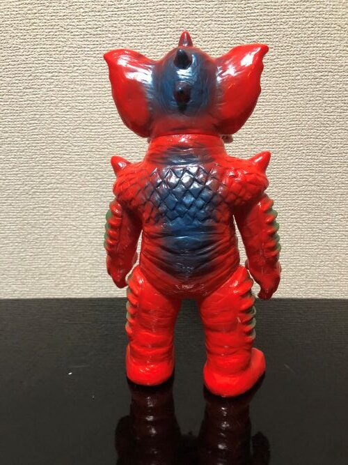 後ろ姿はこんな感じで、赤ベースに青色が吹き付けられてい塗装です。